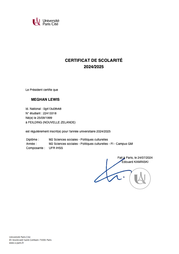| Carla LaFont | 06 56 69 00 62 | carlapublicity@gmail.com | Paris 1 | M2 Recherche Cinéma, esthétique et création | PRODUCTRICE DÉLÉGUÉE / CHEFFE RÉGIE |