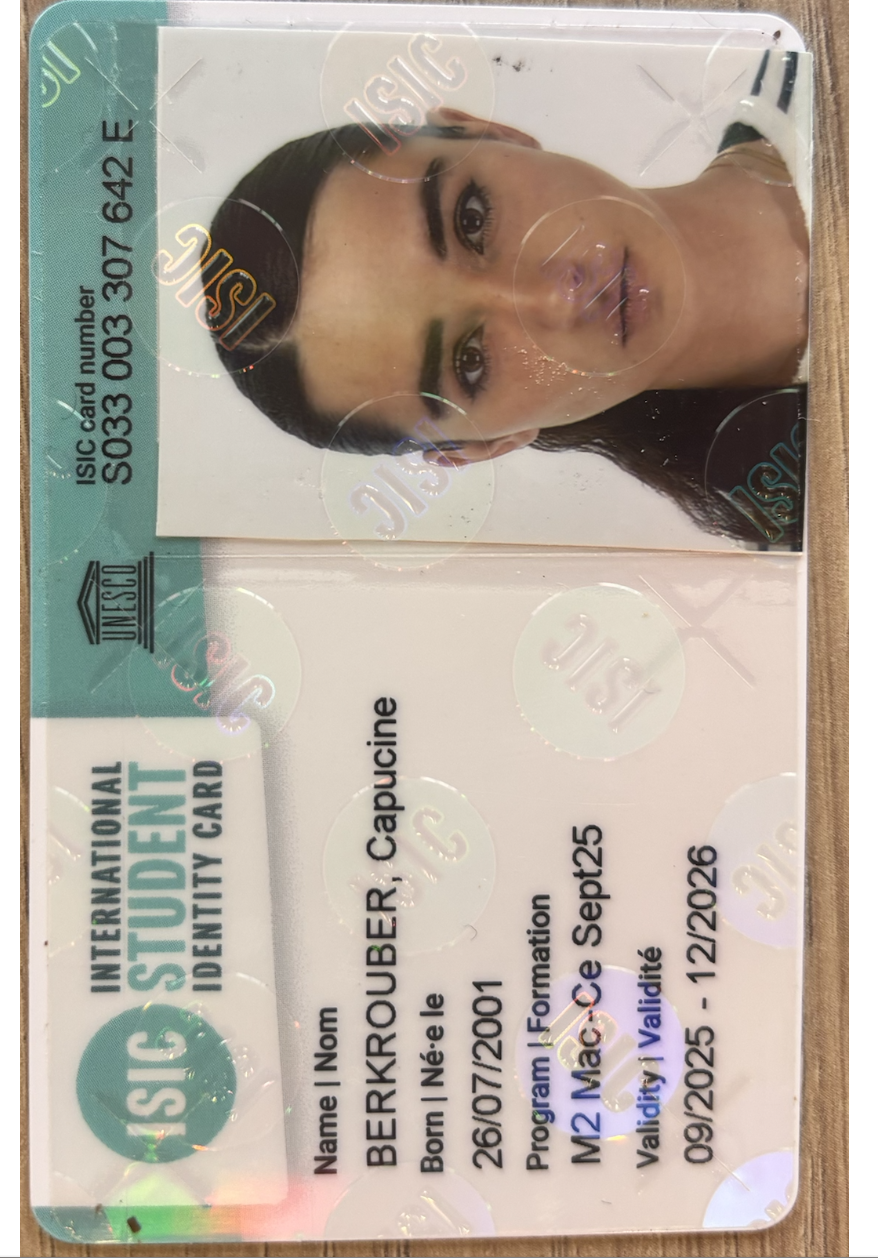 Cartes d’étudiants des collaborateurs au projet (4 maximum) :