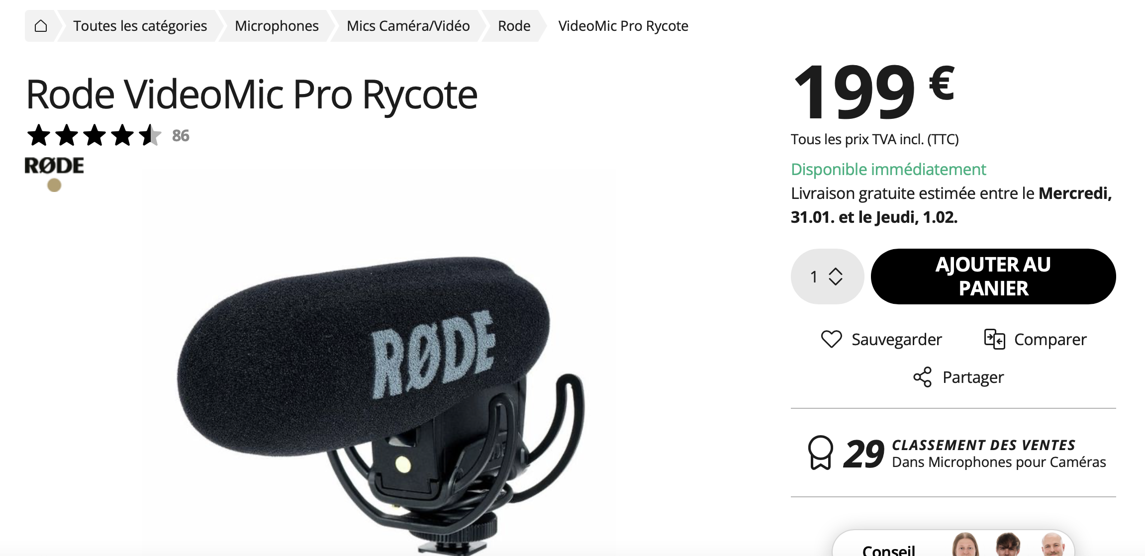 – Rode VideoMic Pro Rycote (199€)