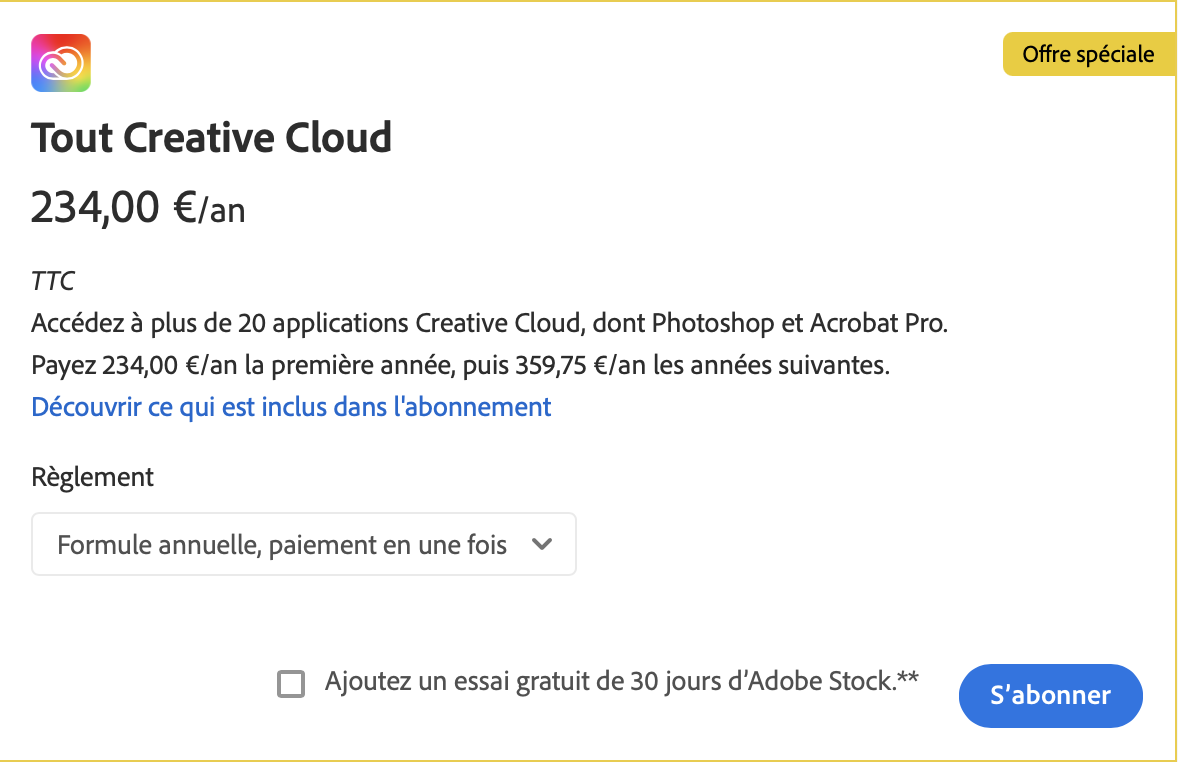 – Abonnement Adobe (234,00€)
