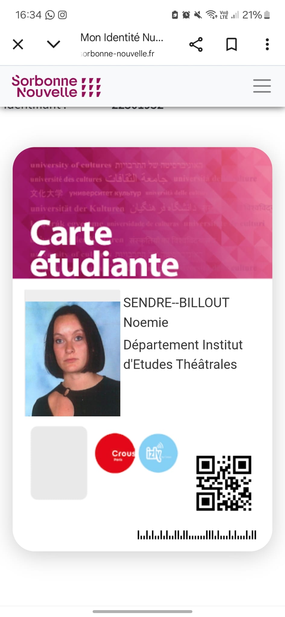 | Noémie Sendre–Billout | 0768890879 | noemie.sendre-billout@sorbonne-nouvelle.fr | Sorbonne Nouvelle | Licence 3 Etudes théâtrales | Directrice de casting et diffuseur |
