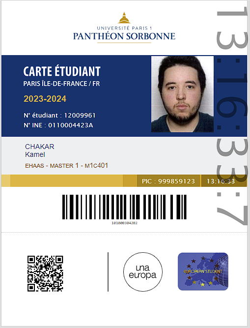 | Kamel CHAKAR | 0617541871 | goultar21@gmail.com | Paris 1 | Master 1 | Communication |