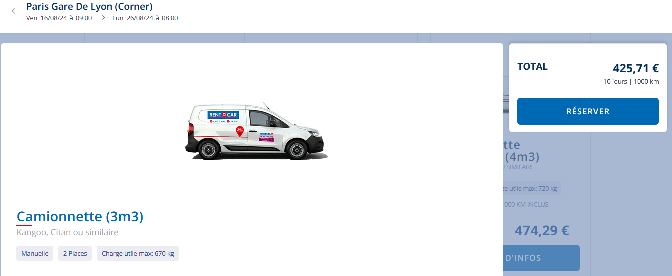 | Utilitaire 3m3 | 425 | |||