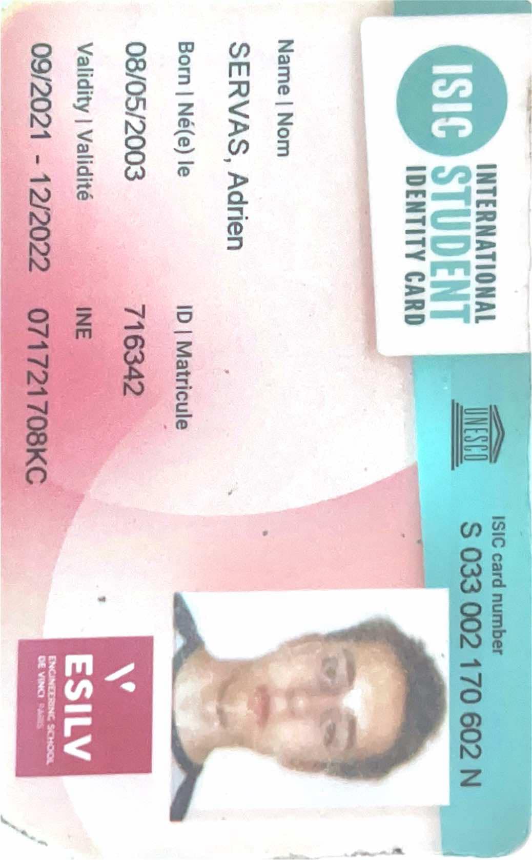 | Adrien SERVAS | 0786512434 | adrien.servas@edu.devinci.fr | ESILV | Année 4 | Responsable évènementiel de l’association Musique Mix |