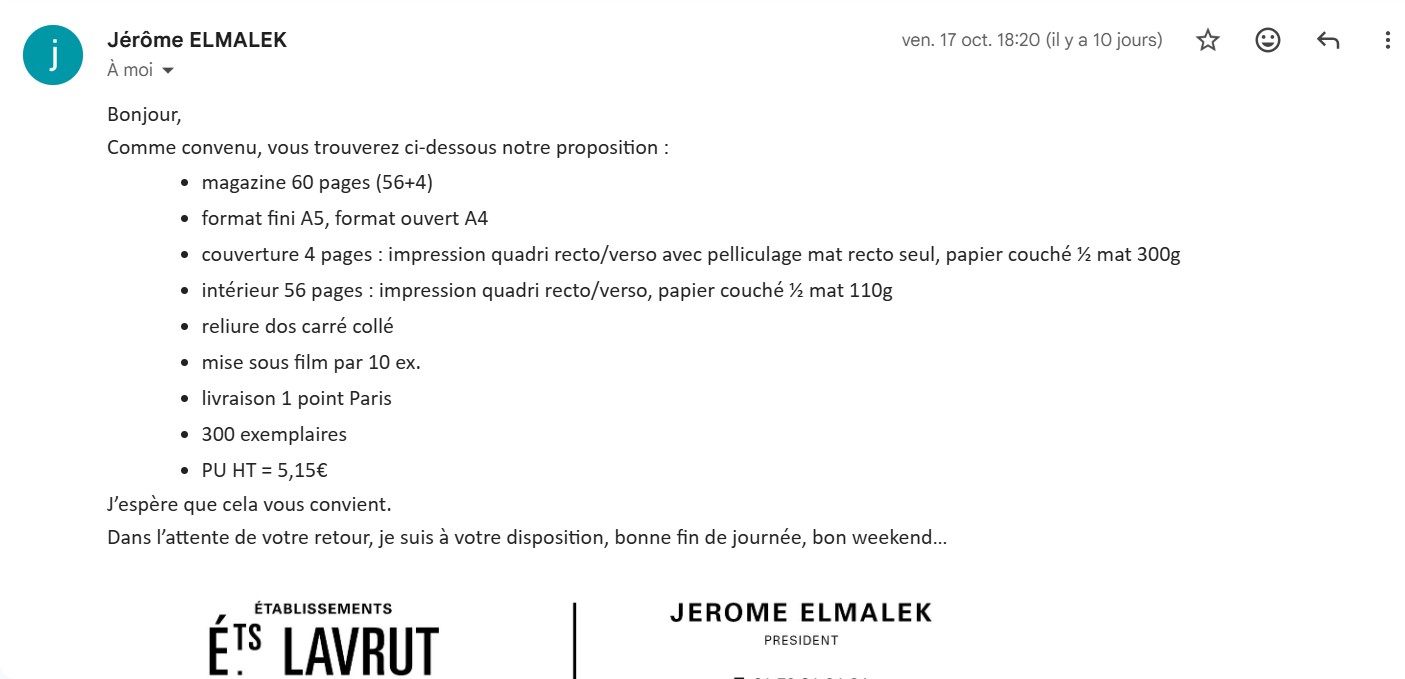 | Impression magazine édition #1 (TTC) | 1854 | Fonds propres | 1490 | Oui |