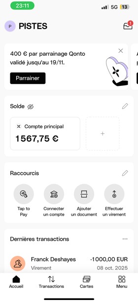 | Qonto (banque, 4 mois) | 53 | FIA Sciences Po | 500 | En cours |