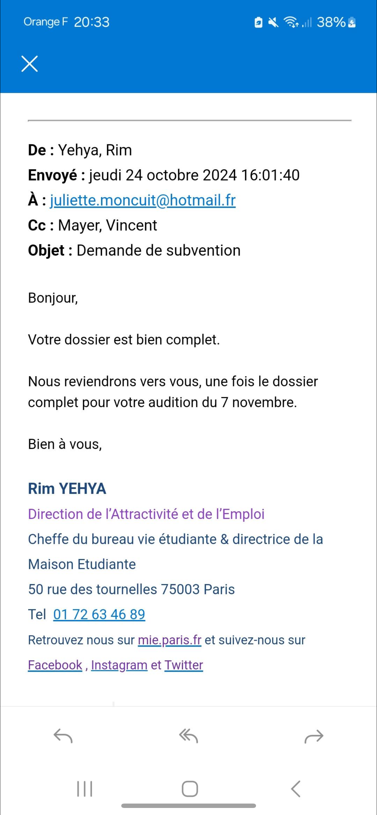 | Montant demandé au Crous | 1500 | En cours | ||