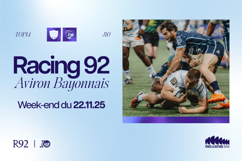 Le Racing 92 accueille l’Aviron Bayonnais à Paris La Défense Arena le 22 novembre pour une affiche qui s’annonce encore pleine de suspense et de ferveur.