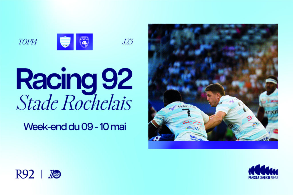 Le Racing 92 accueille le Stade Rochelais à Paris La Défense Arena le week-end du 9/10 mai pour une affiche qui s’annonce encore pleine de suspense et de ferveur.